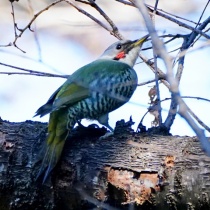 公園に入るといきなり何人かのカメラマンが上を狙って撮っている。何かなと思って私も仲間になって撮りました。アオゲラだそうです。アオゲラに初めて出会えました。アオゲラは日本固有種の鳥で、黄緑色の珍しいキツツキらしいです。きれいな鳥です。出会えて嬉しい。α9 II ...